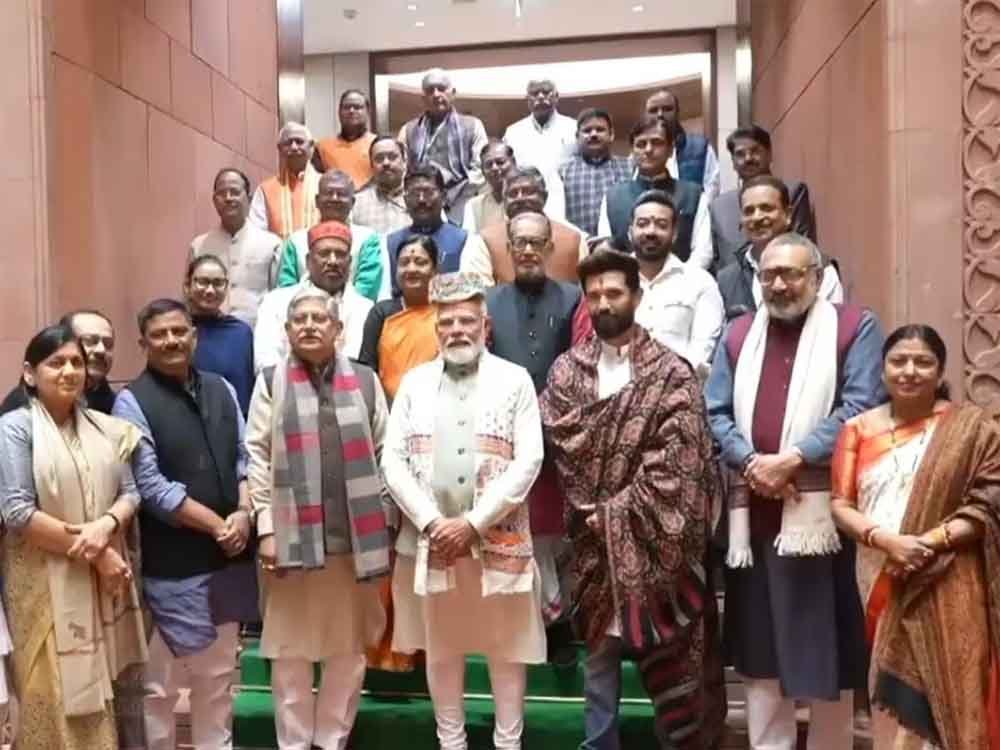 एनडीए के बिहार से आने वाले 30 सांसदों ने संसद भवन में मोदी से मुलाकात की, मोदी के दाएं JDU, बाएं चिराग