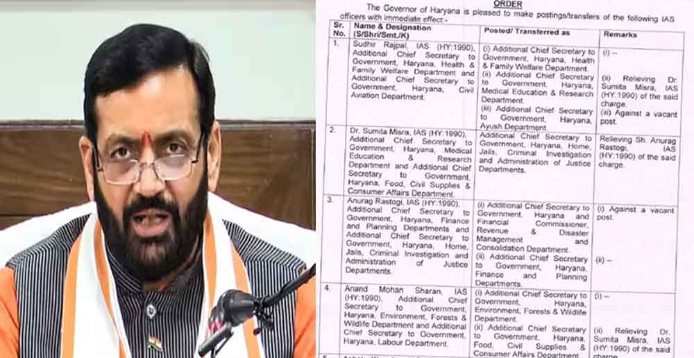 अगर कुछ महत्वपूर्ण आईएएस अधिकारियों के तबादले की बात करें तो, आईएएस अनुराग रस्तोगी को सबसे अहम वित्त आयुक्त राजस्व (एफसीआर), वित्त विभाग एवं आपदा प्रबंधन विभाग की जिम्मेदारी सौंपी गई है। आईएएस सुमिता मिश्रा को गृह सचिव नियुक्त किया गया है। गृह मंत्रालय खुद मुख्यमंत्री नायब सिंह सैनी के पास है। वहीं, आईएएस सुधीर राजपाल को स्वास्थ्य एवं एविएशन विभाग के साथ चिकित्सा शिक्षा अनुसंधान और आयुष विभाग के अतिरिक्त मुख्य सचिव की जिम्मेदारी सौंपी गई है। आईएएस अफसर अशोक खेमका को अनिल विज के महकमे की जिम्मेदारी सौंपी गई है। उन्हें परिवहन विभाग का अतिरिक्त मुख्य सचिव नियुक्त किया गया है। आईएएस अधिकारी डी सुरेश को हरियाणा भवन नई दिल्ली का रेजिडेंट कमिश्नर और उद्योग विभाग एवं वाणिज्य विभाग का प्रधान सचिव बनाया है। आईएएस अधिकारी श्यामल मिश्र को हरियाणा व्यापार मेला प्राधिकरण, नई दिल्ली का मुख्य प्रशासक, फरीदाबाद व गुरुग्राम महानगर विकास प्राधिकरण का मुख्य कार्यकारी अधिकारी और नागरिक उड्डयन विभाग का प्रधान सचिव नियुक्त किया गया है। हरियाणा सरकार ने सौजी रजनी कान्थन को परिवहन आयुक्त, फूलचंद मीना को अंबाला डिवीजन का कमिश्नर, ए श्री निवास को हिसार डिवीजन का आयुक्त और दक्षिण हरियाणा बिजली निगम का एमडी नियुक्त किया है। आनंद मोहन शरण को पर्यावरण, वन एवं वन्यजीव विभाग के साथ खाद्य, नागरिक आपूर्ति एवं उपभोक्ता मामले की जिम्मेदारी सौंपी गई है। आईएएस अधिकारी विनीत गर्ग को उच्चतर शिक्षा विभाग के साथ हरियाणा राज्य प्रदूषण नियंत्रण बोर्ड का अध्यक्ष नियुक्त किया गया है। आईएएस अधिकारी अमित कुमार अग्रवाल को विकास एवं पंचायत विभाग, सूचना, जनसंपर्क, भाषा एवं संस्कृति विभाग और विदेश विभाग का आयुक्त एवं सचिव नियुक्त किया गया है। आईएएस अधिकारी राजीव रंजन को मत्स्य व श्रम विभाग का प्रधान सचिव लगाया गया है। विजय सिंह दहिया को मुद्रण विभाग और पशुपालन विभाग का आयुक्त एवं सचिव और अमनीत पी कुमार को महिला एवं बाल विकास विभाग और अभिलेखागार विभाग में आयुक्त एवं सचिव की जिम्मेदारी दी गई है। आईएएस अधिकारी मोहम्मद साइन को जनस्वास्थ्य अभियांत्रिकी विभाग का आयुक्त एवं सचिव और संजय जून को अतिरिक्त जिम्मेदारी देते हुए मौजूदा नियुक्तियों के साथ फरीदाबाद स्मार्ट सिटी लिमिटेड का मुख्य कार्यकारी नियुक्त किया गया है। वहीं, हरियाणा सीएमओ की हिस्सा रहीं आशिमा बराड़ को सामाजिक न्याय, अधिकारिता, अनुसूचित जाति एवं पिछड़ा वर्ग कल्याण और अंत्योदय, आबकारी एवं कराधान आयुक्त और हरियाणा विद्युत प्रसारण निगम का एमडी नियुक्त किया गया है। आईएएस अधिकारी संजीव वर्मा को खेल, आयुष और विदेश सहयोग विभाग का डायरेक्टर न