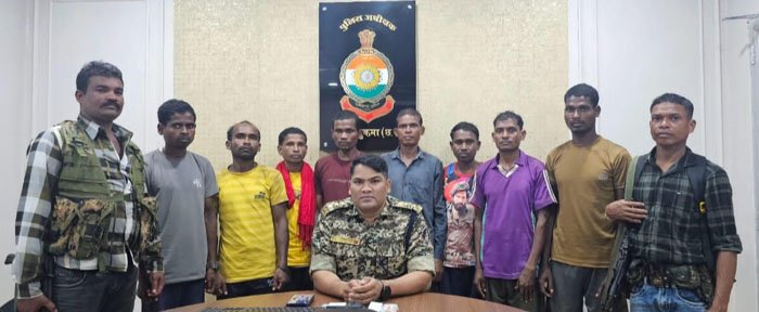 पकड़े गये संदिग्धों से पूछताछ करने पर अपना नाम 1. मुचाकी लखमा पिता कोसा (मिलिशिया सदस्य) निवासी बैनपल्ली पिनपारा थाना जगरगुण्डा 2. कुंजाम देवा पिता हड़मा (मिलिशिया सदस्य) निवासी बैनपल्ली पुजारीपारा थाना जगरगुण्डा 3. उईका हुर्रा पिता मल्ला (मिलिशिया सदस्य) निवासी बैनपल्ली पुजारीपारा थाना जगरगुण्डा 4. कलमु विज्जा पिता पोदिया (मिलिशिया सदस्य) निवासी बैनपल्ली टेकापारा थाना जगरगुण्डा 5. मुचाकी पाला पिता जग्गु (मिलिशिया कमाण्डर, ईनामी 01 लाख) निवासी बैनपल्ली पुजारीपारा थाना जगरगुण्डा, 6. मड़कम सन्नु पिता सिनाल (मिलिशिया डिप्टी कमाण्डर) निवासी बैनपल्ली टेकापारा थाना जगरगुण्डा, 7. मुचाकी सुदरू पिता सुकलू (मिलिशिया सदस्य) निवासी बैनपल्ली पिनपारा थाना जगरगुण्डा, 8. कलमू चैतु पिता मंगडू(मिलिशिया सदस्य) निवासी बैनपल्ली टेकापारा थाना जगरगुण्डा जिला सुकमा को आज शनिवार को गिरफ्तार किया गया है।