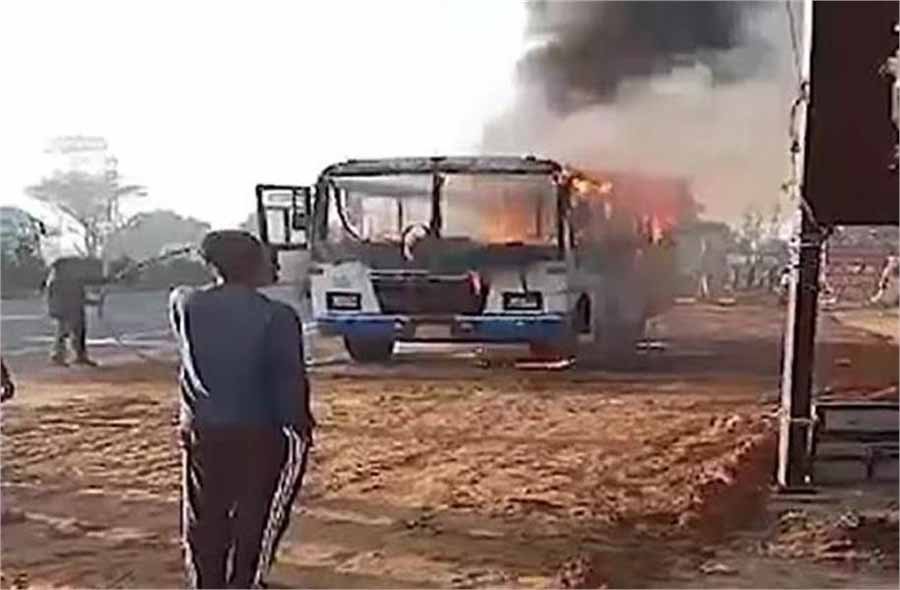मिली जानकारी के मुताबिक, घटना रींगस थाना क्षेत्र की है। यहां के राष्ट्रीय राजमार्ग संख्या 52 पर सरगोठ के पास आते ही बस चालक को आग लगने का आभास हुआ और उन्होंने बस को सड़क किनारे स्थित एक होटल के पास खड़ा कर दिया। जैसे ही आग बढ़ी, यात्रियों ने कूदकर अपनी जान बचाई। सूचना मिलते ही रींगस नगर पालिका की दमकल विभाग की टीम मौके पर पहुंची और करीब 40 मिनट की मशक्कत के बाद आग पर काबू पाया, लेकिन तब तक बस पूरी तरह जलकर खाक हो चुकी थी।
