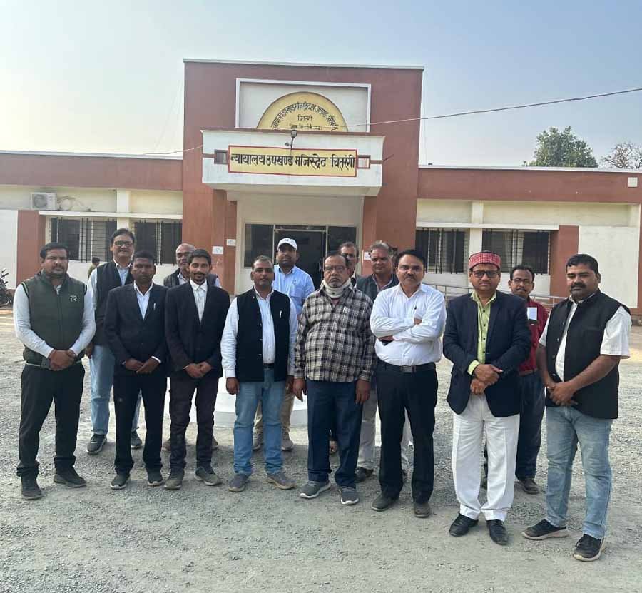 चितरंगी न्यायालय के सभी अधिवक्ताओं द्वारा आज हड़ताल पर जाने से सभी कोर्ट में कामकाज पूरी तरह से ठप रहा विदित हो कि मध्य प्रदेश उच्च न्यायालय अधिवक्ता संघ एवं जिलाअधिवक्ता संघ जबलपुर के द्वारा दिनांक 21 फरवरी 2025 को न्यायालय कार्य से विरत रहने के संबंध में लिए गए निर्णय के समर्थन में अधिवक्ता संघ चितरंगी के आह्वान पर तहसील चितरंगी जिला सिंगरौली मध्य प्रदेश के सभी अधिवक्ता साथियों के द्वारा न्यायालय कार्य से विरक्त रहते हुए केंद्र शासन के द्वारा लाए  जा रहे मनमानी पूर्ण रवैया के विरुद्ध अधिवक्ता संशोधन विधेयक 2025 के विरोध में अपना समर्थन मध्य प्रदेश उच्च न्यायालय अधिवक्ता संघ को किया गया जिसमें आज दिनांक  21 फरवरी 2025 को न्यायालय अपर कलेक्टर सिंगरौली का लिंक कोर्ट चितरंगी में भी नियत था जिसमें तहसील चितरंगी के कोई भी अधिवक्ता के द्वारा प्रकरणों में पैरवी   नहीं की गई इसी प्रकार से न्यायालय एसडीओ चितरंगी न्यायालय तहसीलदार चितरंगी न्यायालय नया तहसीलदार मौहरिया एवं कोरावल के न्यायालय कार्यों से विरत रहकर न्यायालय कार्य का बहिष्कार किया गया जिसमें अपर कलेक्टर पीके सेन गुप्ता एवं न्यायालय एसडीओ सुरेश जादव तहसीलदार एवं नायब तहसीलदारों की कोर्ट में सन्नाटा छाया रहा इस प्रकार से मध्य प्रदेश उच्च न्यायालय अधिवक्ता संघ के आह्वान पर अधिवक्ता संघ चितरंगी की ओर से न्यायालय कार्य का बहिष्कार करते हुए केंद्र सरकार की ओर से ला या जा रहे अधिवक्ता संशोधन विधेयक 2025 का चितरंगी अधिवक्ताओं द्वारा पुरजोर विरोध किया  गया ।