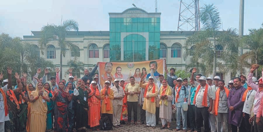 श्री रामलला दर्शन अयोध्याधाम योजना अंतर्गत कबीरधाम जिले के 71 श्रद्धालुओं का दल चार दिवसीय यात्रा पूर्ण कर आज वापस जिले में लौटा आया। श्रद्धालुओं के दल का जिला पंचायत प्रांगण में तिलक लगाकर एवं श्रीफल भेटकर आत्मीय स्वागत किया गया। इस दौरान श्री कैलाश चंद्रवंशी विशेष रूप से उपस्थित थे।