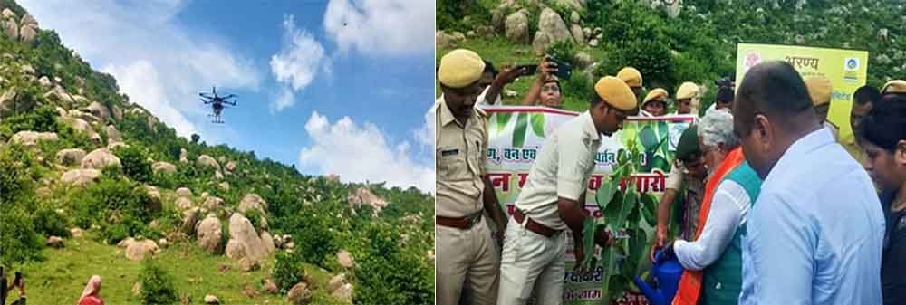 इस मौके पर मंत्री ने वृक्षारोपण करने के साथ ही खुद की देखरेख में वृक्ष विहीन उमगा पहाड़ी पर ड्रोन के माध्यम से पौध अंकुरण के लिए सीड बॉल का छिड़काव कराया। इस दौरान मंत्री ने वित्तीय वर्ष 2023-24 और 2024-25 में औरंगाबाद वन प्रमंडल के तहत क्रियान्वित विभिन्न वृक्षारोपण, मृदा एवं भू-जल संरक्षण एवं आधारभूत संरचना निर्माण की योजनाओं का भी लोकार्पण और शिलान्यास किया। समारोह में मंत्री डॉ. प्रेम कुमार ने कहा कि ड्रोन के माध्यम से उमगा पहाड़ी पर विभिन्न प्रजातियों के सीड बॉल्स के छिड़काव से वृक्ष विहीन यह पहाड़ आने वाले दिनों में पूरी तरह हरा भरा दिखने लगेगा।