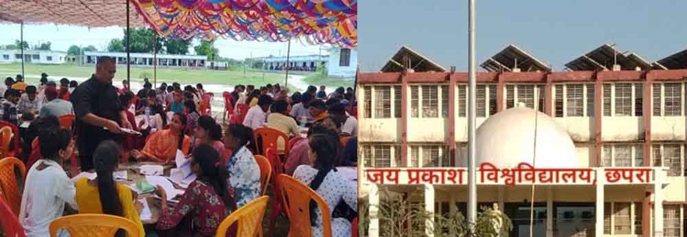 लोक नायक जयप्रकाश नारायण के नाम पर बिहार के छपरा में स्थापित जय प्रकाश विश्वविद्यालय के अंगीभूत इकाई प्रभुनाथ कॉलेज परसा से एक चौंकाने वाली तस्वीरें आई हैं। यह तस्वीरें किसी शादी विवाह या अन्य किसी प्रकार के कार्यक्रम में मिलने वाली सामूहिक भोज का नहीं है बल्कि यह जयप्रकाश विश्वविद्यालय छपरा में स्नातक प्रथम खंड सत्र 2023-2027 के परीक्षा की हैं।