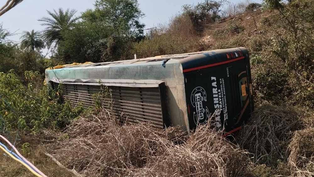 मंडला-सिवनी स्टेट हाईवे में 100 फीट गहरी खाई में पलटी बस, 20 यात्री हुए घायल