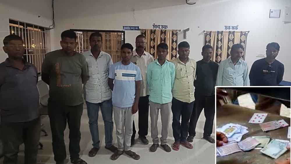 जुआ खेलते पकड़े गए आरोपियों में रामदास गुप्ता (42 वर्ष), सुग्रीव (35 वर्ष), खलील अंसारी (42 वर्ष), मनौवर अंसारी (42 वर्ष), विकास कुमार गुप्ता (41 वर्ष), पांडु राम (40 वर्ष), श्यामगुप्ता (45 वर्ष), रामेश्वर सिंह (25 वर्ष), प्रमोद टोप्पो (37 वर्ष), महिपाल कुजूर (55 वर्ष), संजय प्रसाद गुप्ता (40 वर्ष) हैं.