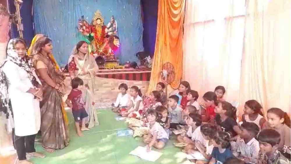 मिनी बस्ती के शिव मंदिर परिसर में बीते 3 सालों से महिलाओं की समिति दुर्गा प्रतिमा की स्थापना करती आ रही है. नवरात्र के दौरान पूरे 9 दिन समिति के सदस्य स्थानीय बस्ती के बच्चों को पढ़ाते-लिखाते नजर आते हैं. साथ ही उनके घरों में संपर्क करके शिक्षा के लिए बच्चों के साथ-साथ परिजनों को जागरूक कर रहे हैं. नशे की गिरफ्त में जा रहे युवाओं को जागरूक करने के साथ नशे से दूर रहने की प्रेरणा भी दे रहे हैं. साथ ही समिति की महिलाएं इलाके के गरीब बच्चों को कापी किताब और शिक्षा में जरूरी अन्य सामग्री का वितरण भी करती हैं, जिससे बच्चों को पढ़ाई-लिखाई करने में कोई असुविधा न हो.