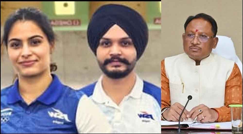 मुख्यमंत्री श्री विष्णु देव साय ने पेरिस ओलंपिक में कांस्य पदक जीतने पर सुश्री मनु भाकर एवं श्री सरबजोत को हार्दिक शुभकामनाएं दी है। मुख्यमंत्री ने अपने संदेश में कहा कि 10 मीटर एयर पिस्टल मिक्सड स्पर्धा में आप लोगों ने देश के लिए गौरव हासिल किया, इसके लिए आपको बहुत सारी शुभकामनाएं।