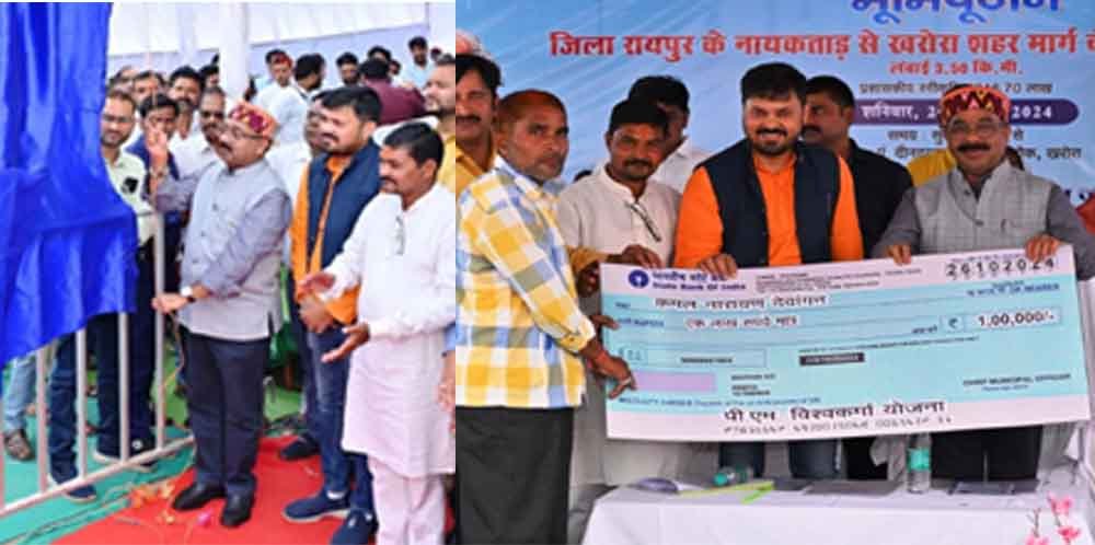 उन्होंने महिला स्वसहायता समूहों और प्रधानमंत्री विश्वकर्मा योजना के हितग्राहियों को कुल सात लाख रुपए के बैंक ऋण का चेक भी प्रदान किया। धरसीवा के विधायक अनुज शर्मा और खरोरा नगर पंचायत के अध्यक्ष अनिल सोनी भी लोकार्पण-भूमिपूजन कार्यक्रम में शामिल हुए। उप मुख्यमंत्री और लोक निर्माण व नगरीय प्रशासन एवं विकास मंत्री अरुण साव ने खरोरा के दीनदयाल उपाध्याय चौक में आयोजित कार्यक्रम में 25 लाख 53 हजार रुपए की लागत से निर्मित पौनी-पसारी हाट-बाजार और पांच लाख रुपए की लागत से बने सामुदायिक भवन का लोकार्पण किया। उन्होंने नायकताड़ से खरोरा शहर तक 19 करोड़ 47 लाख रुपए की लागत से बनने वाले साढ़े तीन किलोमीटर गौरव पथ का भूमिपूजन भी किया।
