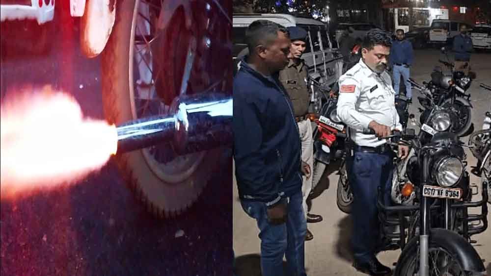 छत्तीसगढ़-जगदलपुर में चेकिंग से मॉडिफाई साइलेंसर वाली 18 बुलेट पकड़ीं