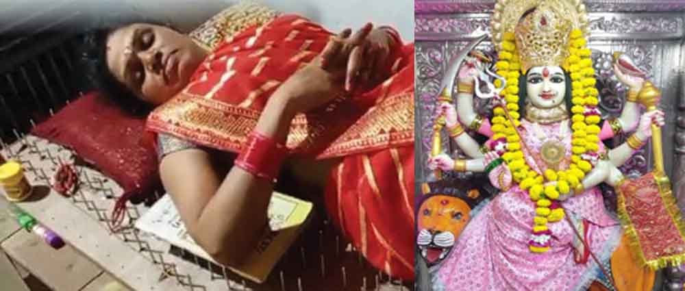 नवरात्र में देवी मां की आस्था में लोग पूजा अनुष्ठान विधान पूर्वक तो करते ही हैं, कुछ लोग एकदम अलग तरीका अपनाकर लोगों को आश्चर्य में भी डाल देते हैं। ऐसी ही आस्था के साथ हरदी बाजार के ग्राम नेवसा निवासी छोटेलाल चौहान की पत्नी ईश्वरी चौहान देवी मां की सेवा में जुटी हैं। उन्होंने नवरात्र में नुकीले कील से बनी खाट पर लेटकर देवी मां की साधना कर रही है।