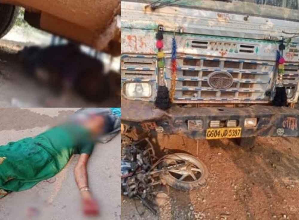 छत्तीसगढ़-रायपुर में रेत से भरे हाइवा की टक्कर से बाइक सवार दंपति की मौत