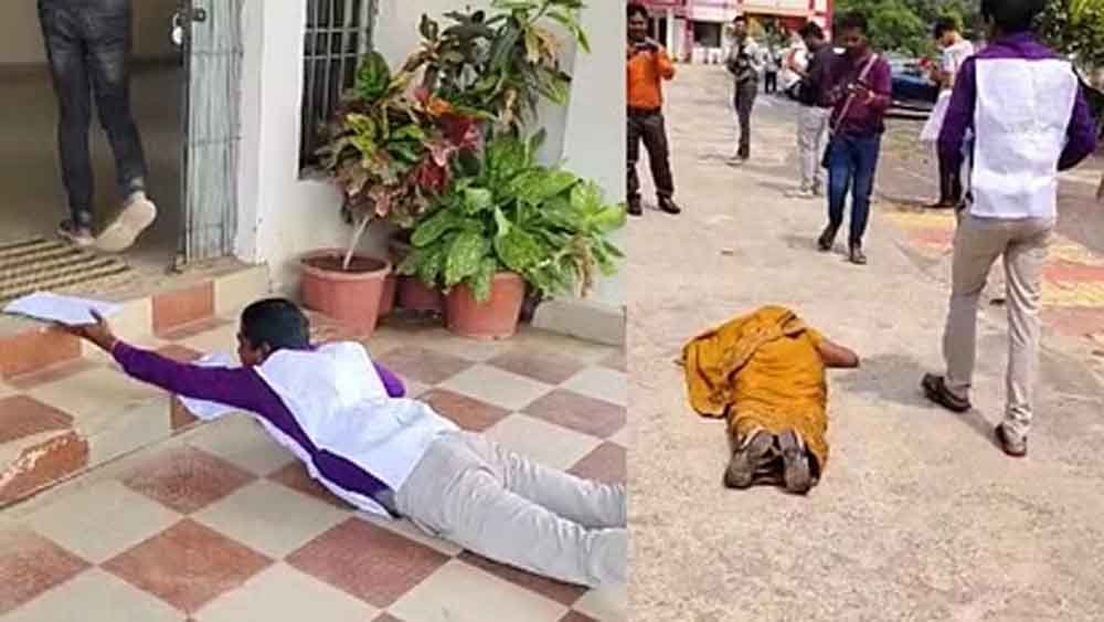 सारंगढ़-बिलाईगढ़ जिले के ग्राम टुड्री निवासी घनश्याम श्रीवास अपनी पत्नी के साथ 35 किलोमीटर दूर से सारंगढ़ जिला मुख्यालय पहुंचा। वह और उसकी पत्नी कलेक्टर कार्यालय के गेट से लेकर अधिकारी के चेंबर तक दंडवत करते हुए न्याय की गुहार लगाई। यह नजारा देखकर मौके पर मौजूद लोगों ने आश्चर्य जाहिर किया।