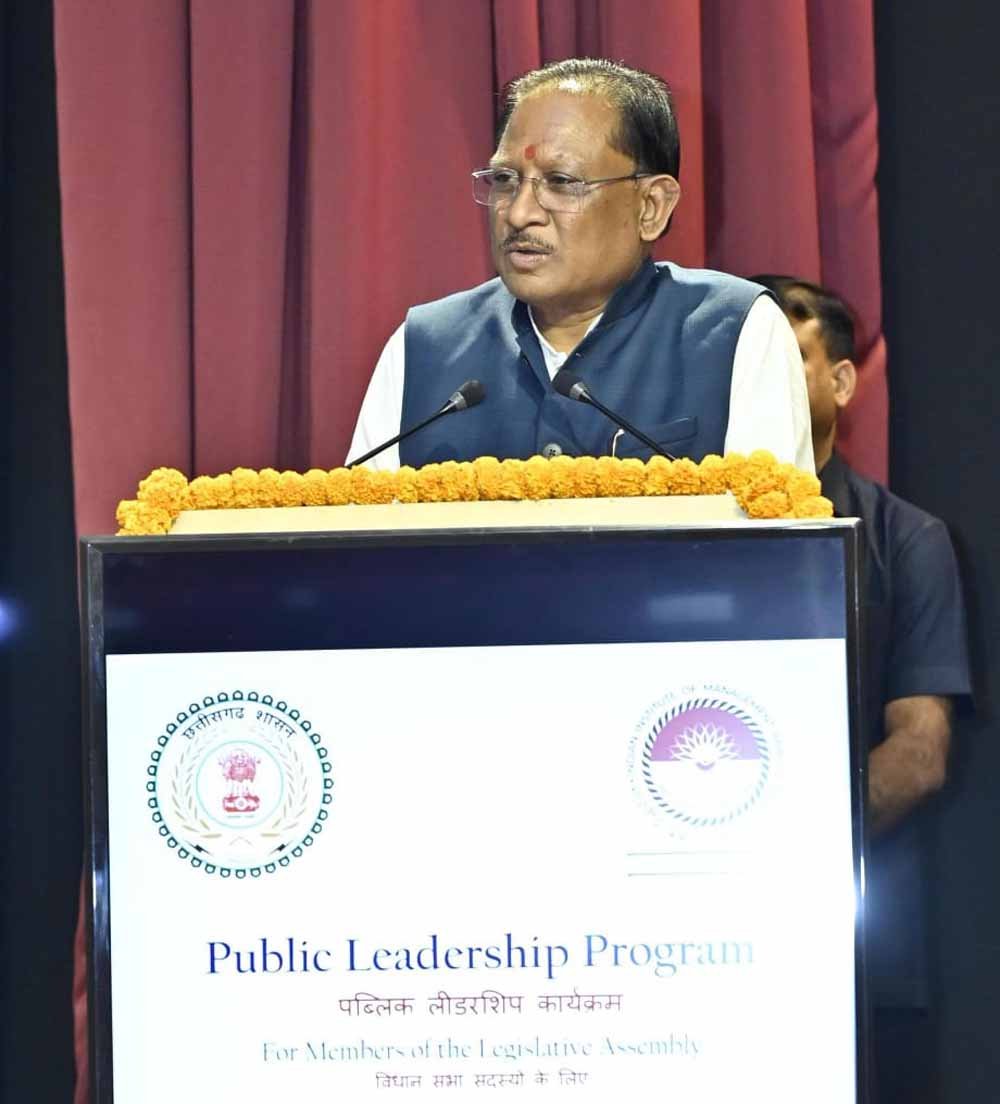 मुख्यमंत्री श्री साय ने कहा कि यह पब्लिक लीडरशिप प्रोग्राम नवीन समाधानों को साझा करने का मजबूत मंच है और विकसित छत्तीसगढ़ 2047 के लक्ष्य को पाने में यह उपयोगी और सार्थक सिद्ध होगा। मुख्यमंत्री श्री साय ने छत्तीसगढ़ शासन द्वारा सुशासन की संकल्पना को स्थापित करने के लिए किए जा रहे प्रयासों की जानकारी साझा की। उन्होंने कहा कि ई ऑफिस की व्यवस्था से प्रशासनिक दक्षता के साथ-साथ पारदर्शिता भी बढ़ी है। मुख्यमंत्री ने कहा कि यदि हमें प्रदेश को आगे ले जाना है तो सभी प्रकार की चुनौतियों से निपटने के लिए समान रूप से तैयार रहना होगा। उन्होंने सार्वजनिक हित में तकनीक के सदुपयोग पर विशेष जोर दिया।