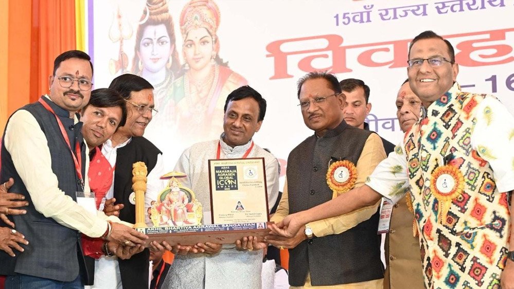 मुख्यमंत्री विष्णुदेव साय ने दिव्यांगजनों के सामूहिक विवाह समारोह में नवविवाहित जोड़ों को दिया आशीर्वाद