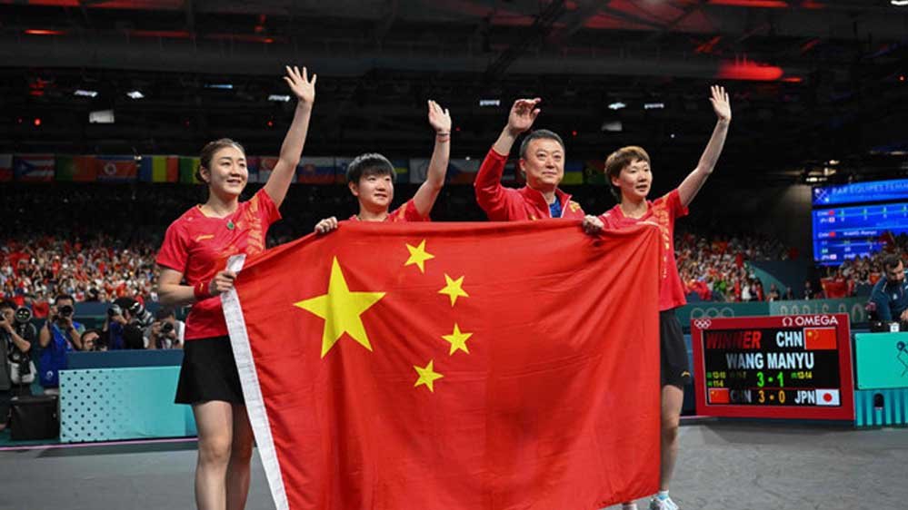 चीन ने  पेरिस खेलों में टेबल टेनिस का महिला टीम स्पर्धा का खिताब जीतकर ओलंपिक इतिहास में देश का 300वां स्वर्ण पदक जीता।