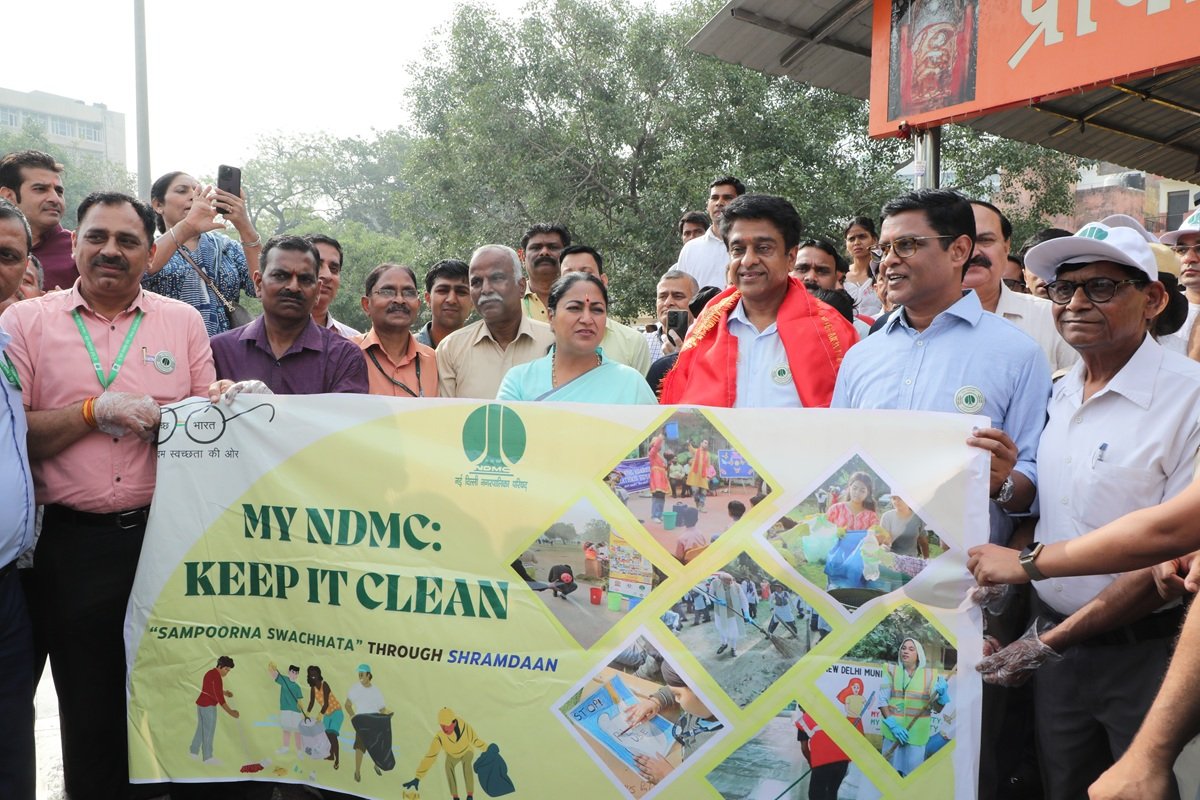  स्कूली छात्रों के साथ 10,000 से अधिक एनडीएमसी कर्मचारियों ने नई दिल्ली में स्वच्छता के लिए श्रमदान पहल में भाग लिया।