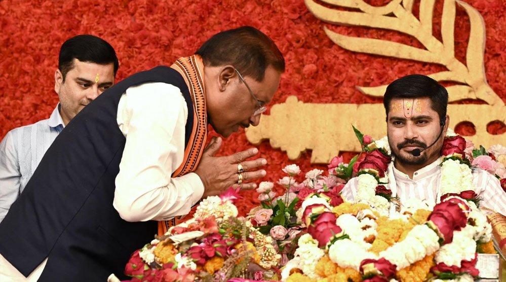 CM साय आज राजधानी रायपुर के डुंडा स्थित अशोका पाम मिडोज कॉलोनी में आयोजित श्रीमद्भागवत कथा में शामिल हुए
