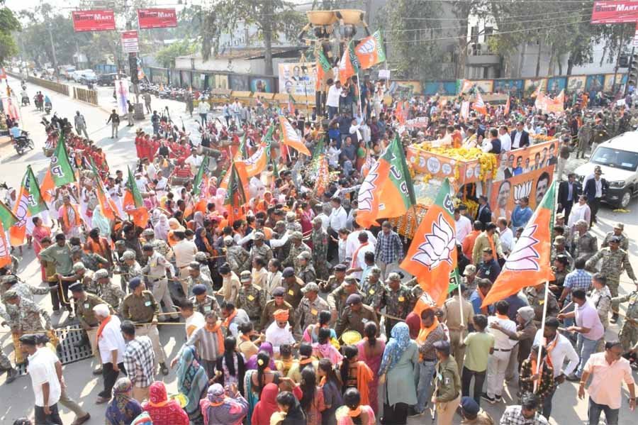 मुख्यमंत्री विष्णुदेव साय के नेतृत्व में आज जगदलपुर में भाजपा का ऐतिहासिक और अभूतपूर्व रोड शो आयोजित हुआ, जिसमें भारी जनसमर्थन देखने को मिला. एयरपोर्ट से शुरू हुए इस भव्य रोड शो में भाजपा कार्यकर्ताओं और स्थानीय नागरिकों ने पूरे जोश के साथ भाग लिया. कमल के झंडों से सजी सड़कों पर उमड़े जनसैलाब ने भाजपा की प्रचंड जीत का संकेत दे दिया.