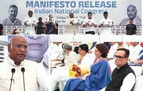नई दिल्ली,06अप्रैल। कांग्रेस ने 2024 लोकसभा चुनाव के लिए ‘ हाथ बदलेगा हालत’ नारे के साथ अपना घोषणा पत्र जारी किया और कहा कि यह न्याय पत्र है जो देश की जनता को पांच न्याय के साथ 25 गारंटी देता है तथा गरीबों की खुशहाली का वादा करता है। कांग्रेस अध्यक्ष मल्लिकार्जुन खडग़े, संसदीय दल की नेता सोनिया गांधी, पार्टी के पूर्व अध्यक्ष राहुल गांधी, घोषणा पत्र समिति के अध्यक्ष पी चिदंबरम और पार्टी महासचिव संगठन के सी वेणुगोपाल ने यहां पार्टी मुख्यालय में संयुक्त रूप से कांग्रेस का घोषणा पत्र जारी जारी करते हुए कहा कि घोषणा पत्र न्याय की गारंटी देता है इसलिए इसे ‘न्याय पत्र’ कहा गया है। इसमें सभी देशवासियों से न्याय का वादा है और लोगों को विश्वास दिलाया गया है कि कांग्रेस को वोट देने से पूरे देश के हालात बदल जाएंगे।