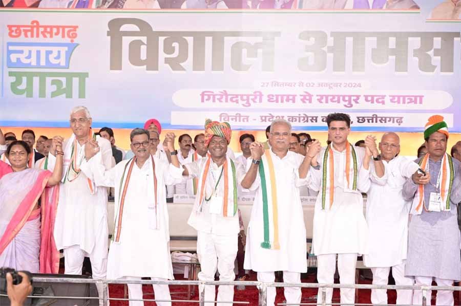 छत्तीसगढ़ में कांग्रेस की न्याय यात्रा का समापन गांधी मैदान में आमसभा के साथ हुआ. आमसभा में सरकार के खिलाफ कांग्रेस के सभी बड़े नेता जमकर गरजे. पायलट, बघेल, महंत, बैज, साहू, चौबे और मरकाम जैसे नेताओं ने सभा को संबोधित करते हुए कहा कि अगर सरकार सचेत नहीं हुई तो प्रदेश भर में संग्राम होगा.