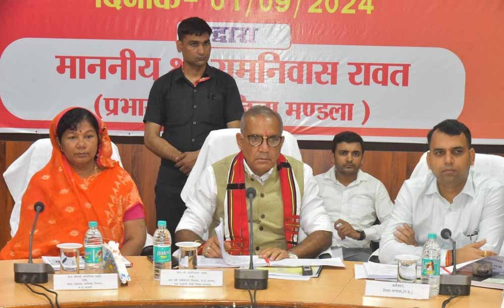 जिला स्तरीय समीक्षा बैठक को संबोधित करते हुए प्रदेश के वन, पर्यावरण विभाग एवं जिले के प्रभारी मंत्री  रामनिवास रावत ने कहा कि सरकार द्वारा सभी वर्ग के कल्याण को ध्यान में रखते हुए योजनाएं संचालित की जा रही हैं। सभी अधिकारी पूरी क्षमता से कार्य करते हुए प्रत्येक पात्र व्यक्ति को योजनाओं से लाभान्वित करें। योजनाओं के माध्यम से हो रहे प्रयासों को परिणामों में बदलने की आवश्यकता है। उन्होंने निर्देशित किया कि मातृ एवं शिशु मृत्यु दर को कम करने तथा कुपोषण को जड़ से समाप्त करने के लिए जागरूकता अभियान संचालित करें। जिला योजना भवन में संपन्न हुई इस बैठक में म.प्र. शासन की लोक स्वास्थ्य यांत्रिकी मंत्री संपतिया उइके, सांसद फग्गन सिंह कुलस्ते, विधायक बिछिया नारायण सिंह पट्टा, विधायक निवास चैनसिंह वरकड़े, कलेक्टर सोमेश मिश्रा, पुलिस अधीक्षक रजत सकलेचा, जिला पंचायत अध्यक्ष संजय कुशराम, भाजपा जिला अध्यक्ष भीष्म द्विवेदी, सभी डीएफओ सहित संबंधित उपस्थित रहे।