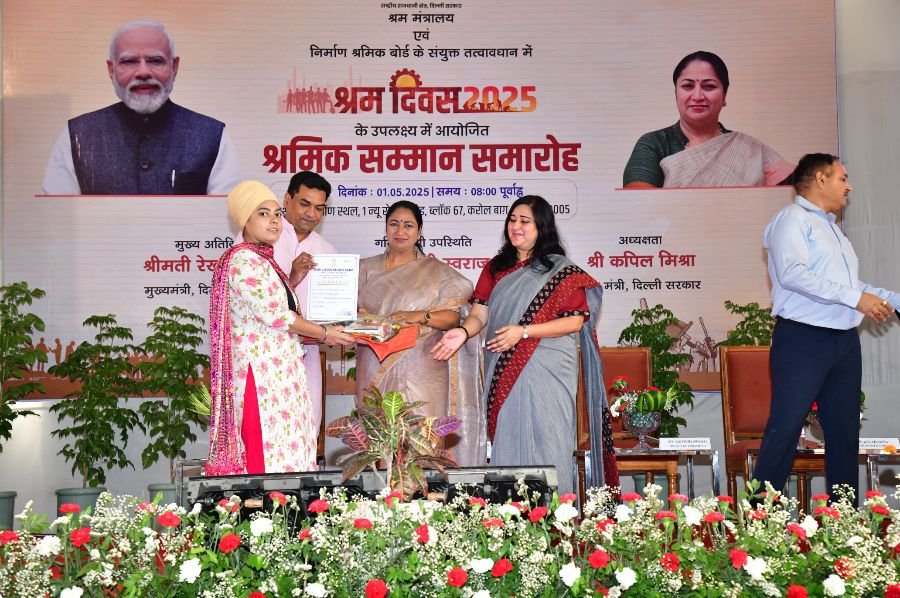 नई दिल्ली, 1 मई: श्रमिक दिवस के अवसर पर दिल्ली की मुख्यमंत्री श्रीमती रेखा गुप्ता ने करोल बाग में आयोजित श्रमिक सम्मान समारोह में भाग लिया और दिल्ली में श्रमिकों के कल्याण के लिए कई बड़ी घोषणाएं कीं।