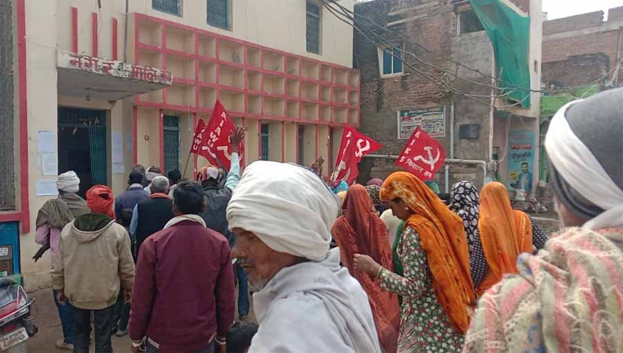 आवास के पट्टे एवं आवास स्वीकृत करने की मांग को लेकर मार्क्सवादी कम्युनिस्ट पार्टी के बैनर तले नपा पर किया प्रदर्शन