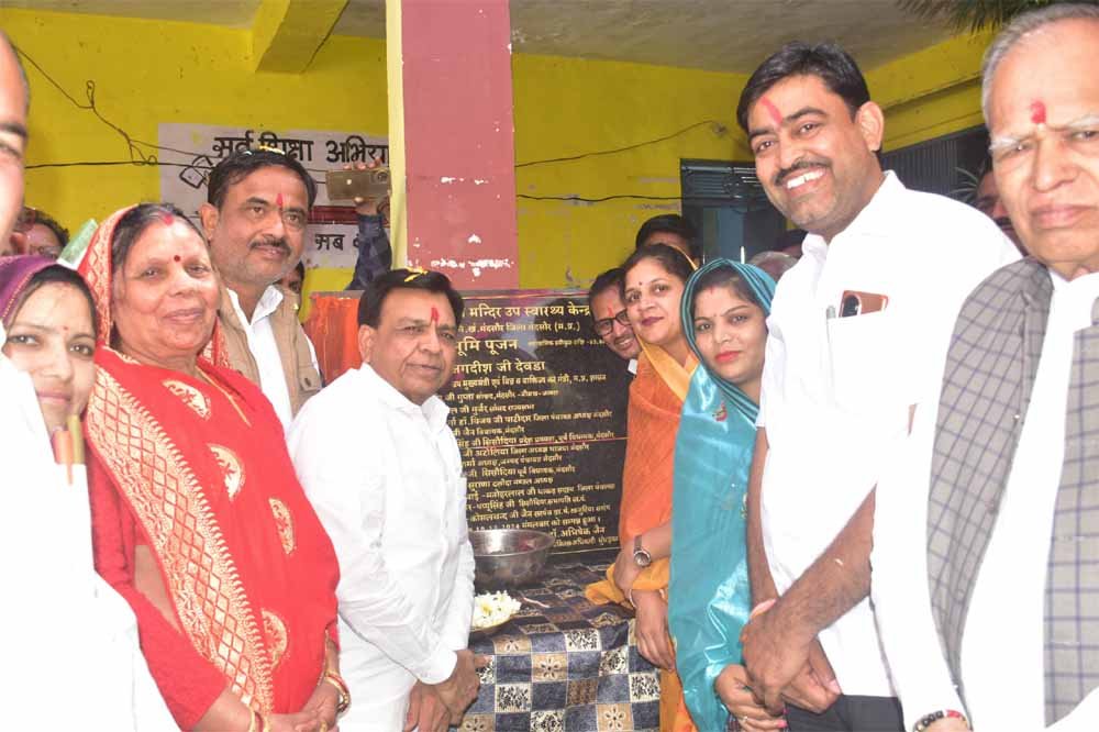 उप मुख्यमंत्री श्री जगदीश देवड़ा ने मंदसौर जिले में ग्राम खजुरिया सारंग में 65 लाख रुपए की लागत से निर्मित होने वाले आयुष्मान आरोग्यम मंदिर उप स्वास्थ्य केंद्र का भूमि पूजन किया। कार्यक्रम में ग्राम खजुरिया सारंग के शिक्षक, शिक्षिका एवं 10वीं कक्षा में 85% लाने वाली बालिका कुमारी दिव्या पाटीदार का सम्मान किया गया।