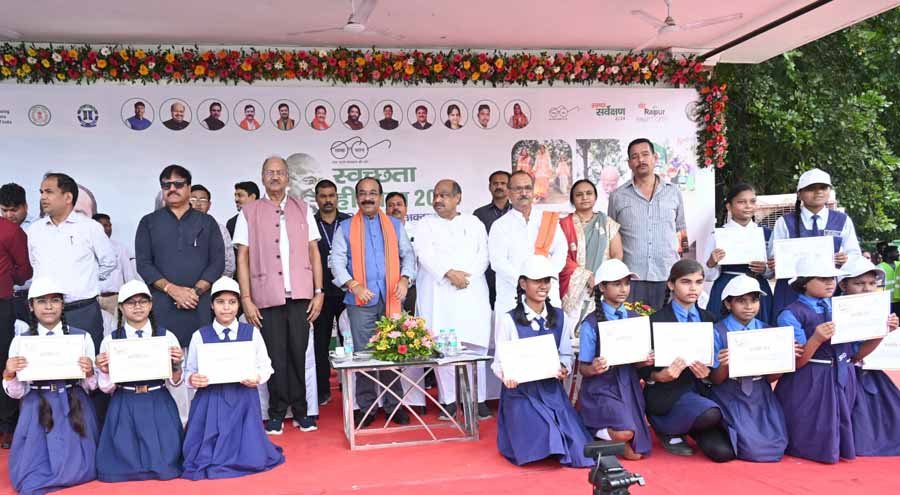उप मुख्यमंत्री तथा नगरीय प्रशासन एवं विकास मंत्री श्री अरुण साव आज रायपुर के जे.आर. दानी स्कूल में स्वच्छता की पाठशाला-सह-सफाई मित्र सुरक्षा शिविर में शामिल हुए। उन्होंने कार्यक्रम में छात्राओं को स्वच्छता बनाए रखने और इसके बारे में लोगों को जागरूक करने की शपथ दिलाई। उन्होंने शहर के स्वच्छता कर्मियों को शासन की योजनाओं का लाभ दिलाने विभिन्न विभागों द्वारा आयोजित शिविर का भी जायजा लिया। श्री साव ने कार्यक्रम में स्वच्छता ही सेवा पखवाड़ा के दौरान आयोजित विभिन्न गतिविधियों की विजेता छात्राओं को प्रशस्ति पत्र प्रदान किया। उन्होंने सफाई कर्मियों को किट भी वितरित किए। नगरीय प्रशासन एवं विकास विभाग, जिला प्रशासन और रायपुर नगर निगम द्वारा आयोजित इस कार्यक्रम में सांसद श्री बृजमोहन अग्रवाल और विधायक श्री पुरंदर मिश्रा, नगर निगम के सभापति प्रमोद दुबे भी शामिल हुए।