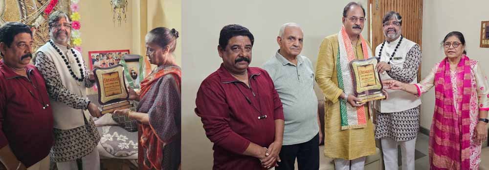 रक्तदान को जीवन में शामिल करने वाले  इंदौर निवासी अनिल रांका जो 106 बार रक्तदान दिया उनके घर जा कर कृष्णा गुरुजी ने उन्हें तिरंगे दुपट्टे से समाज की और से स्वागत कर विध्नहर्ता 2024 की ट्रॉफी से सम्मनित किया ।और कहा आप 106 जीवन के जीवन दाता बने ना जाने कितने परिवारों के विध्नहर्ता  बने।कृष्णा गुरुजी ने कहा अनिल रांका जी न जाने कितने परिवारों के जीवन के गणेश बने