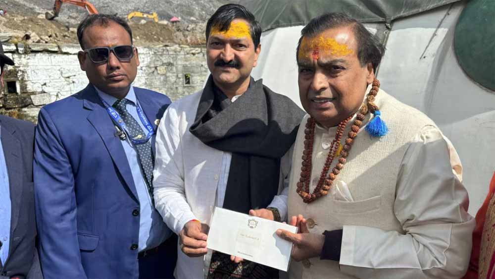 रिलायंस इंडस्ट्रीज के अध्यक्ष एवं प्रबन्ध निदेशक प्रसिद्ध उद्योगपति मुकेश अंबानी ने रविवार को श्री बदरीनाथ धाम तथा श्री केदारनाथ धाम के दर्शन किये। श्री बदरीनाथ – केदारनाथ मंदिर समिति बीकेटीसी अध्यक्ष अजेंद्र अजय ने बताया कि प्रसिद्ध उद्योगपति मुकेश अंबानी श्री बदरीनाथ धाम दर्शन किए उद्योगपति मुकेश अंबानी ने पांच करोड़ की धनराशि दानस्वरूप दी है।