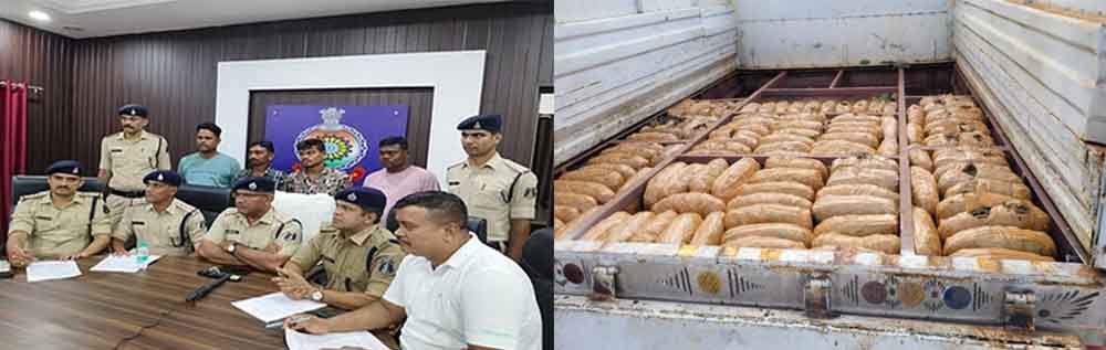 दुर्ग में अंतरराज्यीय गांजा तस्कर गिरोह का पुलिस ने खुलासा किया है इस मामले में पुलिस ने चार आरोपियों को गिरफ्तार किया है। आरोपियों ने गांजा तस्करी के दौरान दो गाड़ियों को सुनसान इलाके में गाड़ी छोड़कर फरार हो गए थे। जिसके बाद तफ्तीश करते हुए पुलिस आरोपियों तक पहुंची। 13 अगस्त को जेवरा सिरसा चौकी क्षेत्र के कचांदूर गौठान खार और उससे कुछ दूरी पर लावारिस हालत में 2 मालवाहक वाहन मिले थे। जिसमें अवैध मादक पदार्थ की तस्करी के लिए चेंबर बनाकर बड़ी मात्रा में गांजा तस्करी कर रहे थे।