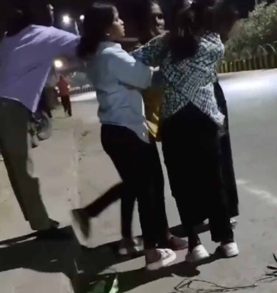 वायरल वीडियो में दिख रहा है कि दो लड़कियां आपस में जमकर मारपीट कर रही हैं। कभी कोई भारी पड़ती है तो कभी कोई। इधर, कैमरे के पीछे से कोई युवक “पुलिस आ गई… पुलिस आ गई” कहकर लड़कियों को आगाह करते हुए सुनाई पड़ रहा है। वहीं कुछ युवक मौके पर तमाशबीन बन खड़े सब देख रहे हैं। दोनों युवतियों की दोस्त बीच-बचाव के लिए आती है, लेकिन वो भी लपेटे में आ जाती है। घटना मणिपुर थाना क्षेत्र अंतर्गत रिंग रोड की बताई जा रही है।