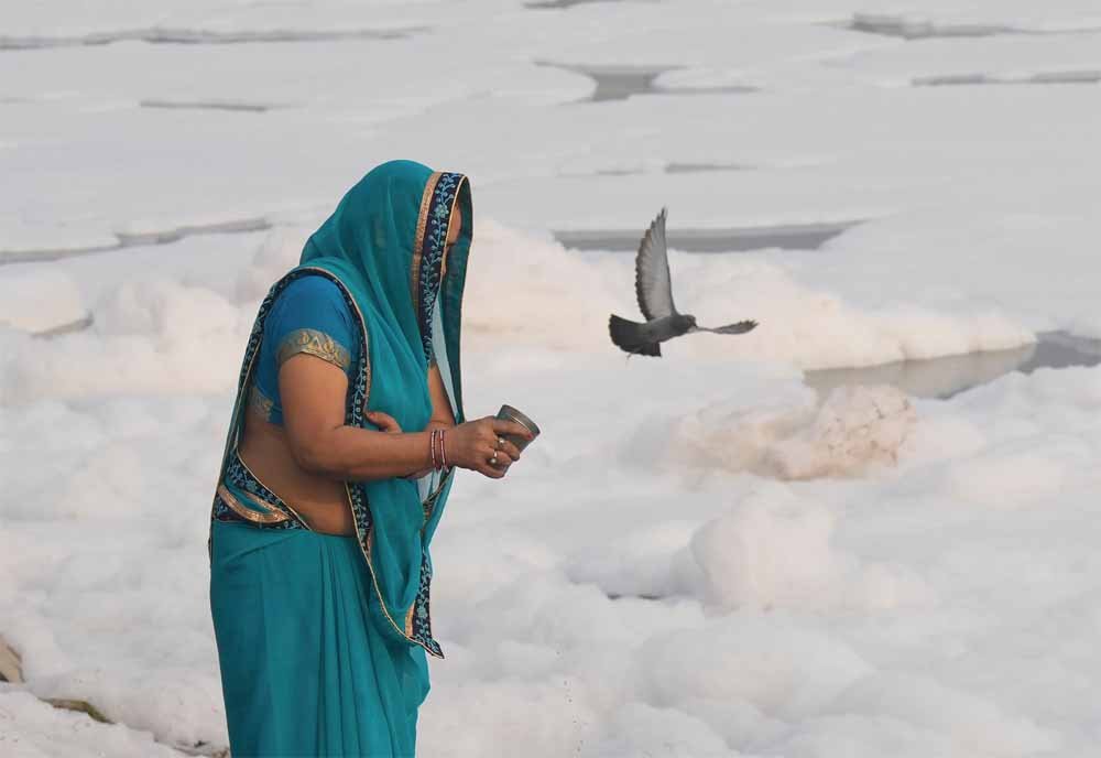 मंगलवार को पारंपरिक 'नहाय खाय' के साथ चार दिवसीय छठ पर्व शुरू हुआ, लेकिन दिल्ली में कालिंदी कुंज के पास यमुना नदी के तट पर एक भयावह दृश्य ने धार्मिक भावना को बाधित कर दिया। हाल ही में श्रद्धालु बड़ी संख्या में एकत्र हुए थे और उन्होंने पूजा-अर्चना की तथा पवित्र स्नान किया, जो सूर्य देव को समर्पित त्यौहार का एक अभिन्न अंग है। हालांकि, नदी की सतह पर तैरते जहरीले झाग के दृश्य ने उनकी भक्ति को फीका कर दिया, जो शहर के चल रहे प्रदूषण संकट की भयावह याद दिलाता है।