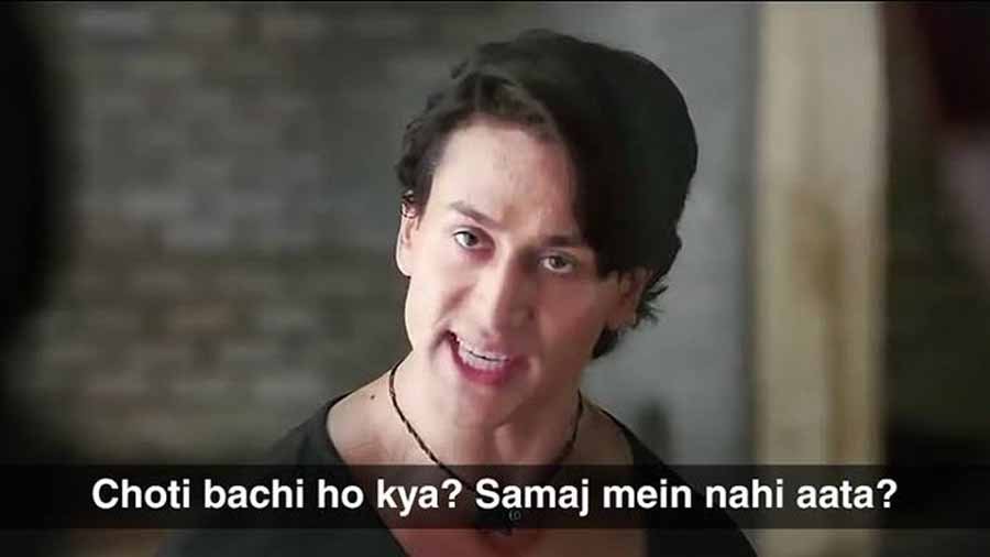 अभिनेता का एक वीडियो सामने आया है, जिसमें वह प्रशंसकों की भीड़ में खड़े नजर आ रहे हैं। बातचीत के दौरान उनके प्रशंसक उनसे ‘सर, एक डायलॉग तो बनता है’ चिल्लाने लगते हैं। इस पर अभिनेता माइक थामते हैं और कहते हैं ’यार आप लोगों को पता तो है कि कौन सा डायलॉग है, आप ही लोग बोल दो’। इसके बाद भीड़ की आवाज के साथ टाइगर चिल्लाते हुए कहते हैं ‘छोटी बच्ची हो क्या?’