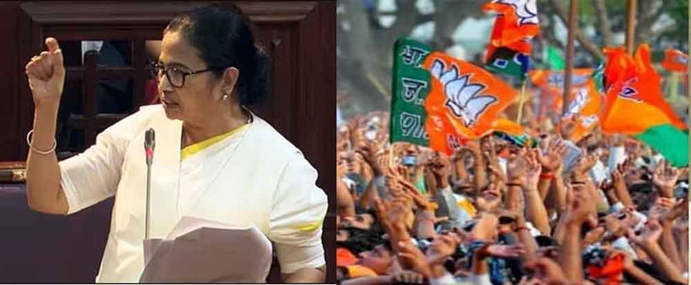 उन्होंने इस पर प्रतिक्रिया देते हुए कहा, मैं बंगाल को विभाजित करने की चुनौती देती हूं। भाजपा ने सोमवार को विधायक के तौर पर कटाव नियंत्रण और बाढ़ शमन पर चर्चा के लिए सुमन कांजीलाल का नाम शामिल किए जाने के विरोध में पश्चिम बंगाल विधानसभा से वॉकआउट कर गए। भाजपा नेता संकर घोष ने बताया कि कांजीलाल जिन्हें अलीपुर से भाजपा विधायक बनाया गया है, वह तृणमूल कांग्रेस (टीएमसी) में शामिल हो गई हैं। इसका विरोध करते हुए घोष ने स्पीकर बिमान बनर्जी से कहा कि भाजपा विधायक दल ने चर्चा में शामिल होने के लिए उनका नाम नहीं दिया था। स्पीकर बिमान बनर्जी ने कहा कि उन्होंने चर्चा में भाग लेने के लिए कांजीलाल का नाम शामिल करने की अनुमति दे दी है। इसपर भाजपा विधायकों ने नारे लगाते हुए विधानसभा से वॉकआउट किया।