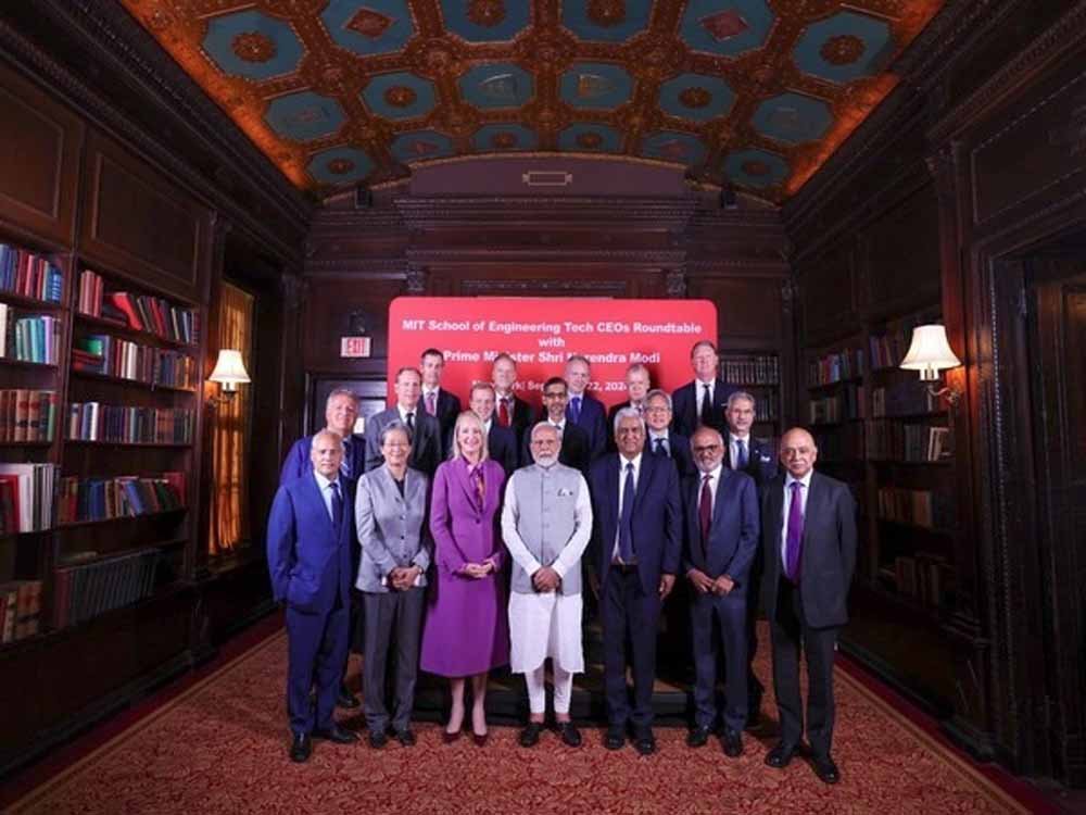 प्रधानमंत्री नरेंद्र मोदी ने न्यूयॉर्क में एक गोलमेज सम्मेलन में एडोब, एक्सेंचर, गूगल और आईबीएम समेत 15 प्रौद्योगिकी सीईओज से मुलाकात की तथा प्रौद्योगिकी एवं नवाचार से संबंधित पहलुओं पर चर्चा की। प्रधानमंत्री ने एक्स पर एक पोस्ट में कहा कि वह भारत के प्रति अपार आशावाद देखकर प्रसन्न हैं। उन्होंने पोस्ट में कहा 'न्यूयॉर्क में प्रौद्योगिकी सीईओज के साथ एक फलदायी गोलमेज सम्मेलन हुआ, जिसमें प्रौद्योगिकी, नवाचार और अन्य से संबंधित पहलुओं पर चर्चा की गई। साथ ही इस क्षेत्र में भारत द्वारा की गई प्रगति पर प्रकाश डाला गया। मैं भारत के प्रति अपार आशावाद देखकर प्रसन्न हूं।' एक बयान में कहा गया कि प्रधानमंत्री ने मैसाचुसेट्स इंस्टीट्यूट ऑफ टेक्नोलॉजी (एमआईटी), स्कूल ऑफ इंजीनियरिंग द्वारा आयोजित गोलमेज सम्मेलन में प्रौद्योगिकी उद्योग के नेताओं के साथ न्यूयॉर्क में बातचीत की। प्रौद्योगिकी-गोलमेज सम्मेलन में आर्टिफिशियल इंटेलिजेंस और क्वांटम; जैव प्रौद्योगिकी और जीवन विज्ञान; कंप्यूटिंग, आईटी और संचार; और सेमीकंडक्टर प्रौद्योगिकियों पर ध्यान केंद्रित किया गया।