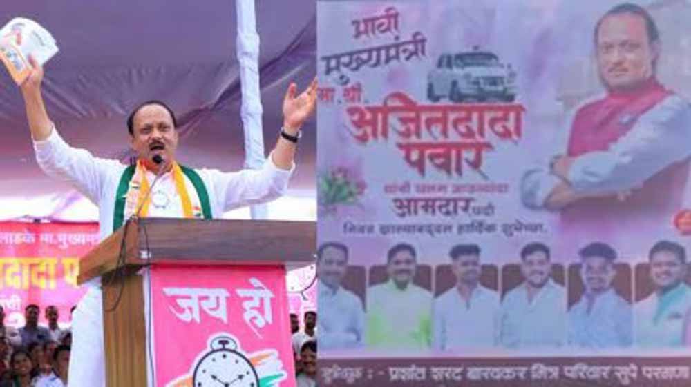 अलग-अलग जगह लगे इन पोस्टर में लिखा गया है कि अजित पवार का लगातार आठवीं बार विधायक चुनकर आने के लिए अभिनंदन। बारामती एनसीपी का गढ़ रहा है। यहीं से अजित पवार जीत कर विधानसभा पहुंचे हैं। इसे नतीजों से पहले गठबंधन पर दबाव बनाने की रणनीति के तौर पर देखा जा रहा है। पार्वती विधानसभा क्षेत्र और बारामती क्षेत्र में ये बैनर लगाए गए हैं।