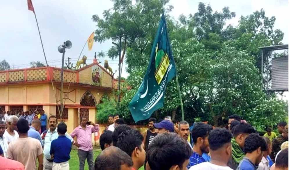 झारखंड के गिरिडीह में दुर्गा मंदिर के सामने गाड़ा इस्लामिक झंडा