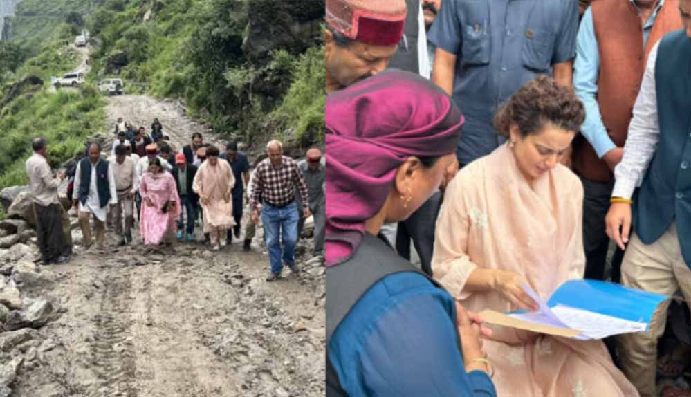 कंगना रनौत ने दुर्गम इलाकों में जाकर बाढ़ प्रभावित लोगों से मुलाकात की और धरती माता से दया की प्रार्थना