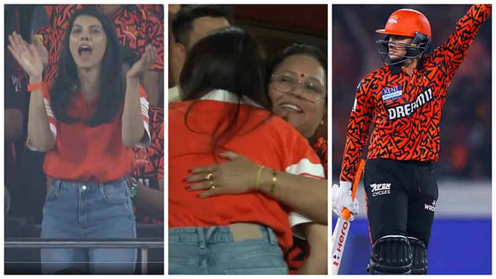 अभिषेक ने 40 गेंद में आईपीएल करियर का अपना पहला शतक लगाया। वह आईपीएल में सबसे तेज शतक जड़ने वाले छठे बल्लेबाज बन गए। उन्होंने जैसे ही शतक लगाया काव्या मारन अपनी सीट से खुशी से उछल पड़ीं। इसके बाद वह दौड़ते हुए वहीं पास में बैठे अभिषेक के पैरेंट्स के पास पहुंचीं। काव्या ने अभिषेका की मां को गले लगा लिया। फिर अभिषेक के पिता से हाथ मिलाया। आईपीएल ने इसका वीडियो भी शेयर किया है।