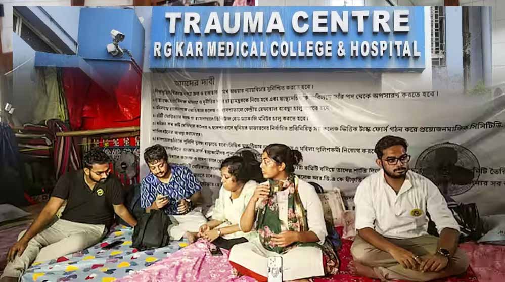 पश्चिम बंगाल के डॉक्टरों के संयुक्त मंच ने जूनियर डॉक्टरों के साथ एकजुटता का संकल्प लिया है, जो आर जी कर मेडिकल कॉलेज और अस्पताल की महिला डॉक्टर के बलात्कार और हत्या के मामले में न्याय की मांग कर रहे हैं. इसके साथ ही भ्रष्ट स्वास्थ्य सेवा प्रणाली को समाप्त करने की मांग कर रहे हैं. जूनियर डॉक्टर अपनी मांगों को लेकर पिछले चार दिनों से आमरण अनशन पर हैं.