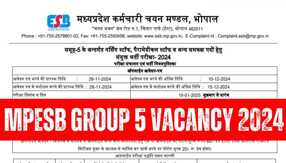 मध्य प्रदेश कर्मचारी चयन बोर्ड ने ग्रुप-5 के तहत 1170 पदों पर भर्ती, नर्सिंग, पैरामेडिकल और अन्य पदों के लिए आवेदन आज से शुरू