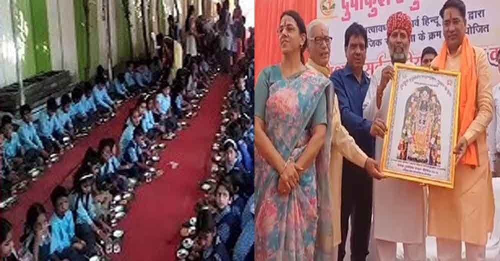 अजमेर जिले के तीर्थ नगरी पुष्कर के माहेश्वरी भवन में आज दुर्वांकुश एजुकेशन फाउंडेशन के तत्वावधान में सर्व सनातन हिंदू समाज की ओर से नवरात्रि पर्व के उपलक्ष्य में सर्व समाज की देवी स्वरूपा 2100 कन्याओं का सामूहिक पूजन किया गया, साथ ही नन्हें बालकों को भैरव मानते हुए उनका भी पूजन किया गया।