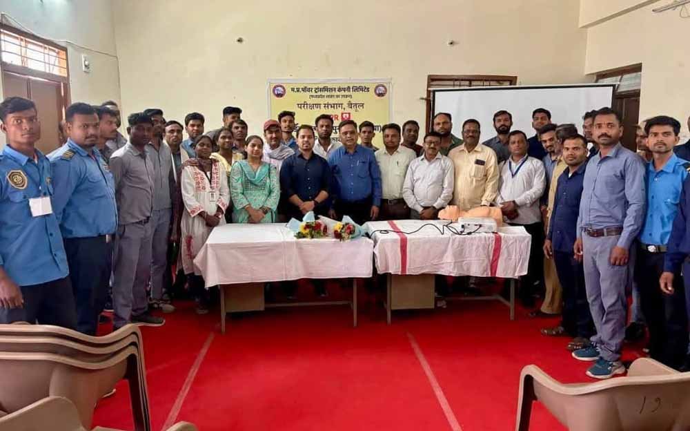 मध्यप्रदेश पावर ट्रांसमिशन कंपनी (एम.पी. ट्रांसको) स्थानीय जिला चिकित्सालयों और मेडिकल कॉलेजों के सहयोग से मध्यप्रदेश में एम.पी. ट्रांसको के कर्मियों के लिए ‘‘सी.पी.आर. एवं अन्य ऐसे ही जीवन रक्षक तकनीकों‘‘ पर प्रशिक्षण कार्यशाला आयोजित की जा रही हैं। इसी क्रम में एक प्रशिक्षण कार्यशाला बैतूल में आयोजित की गई।