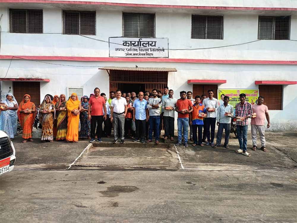 नगर पालिक निगम सिंगरौली के आयुक्त श्री डी.के शर्मा ने आज निगम के सभी जोनो मोरवा, नवजीवन विहार, ग्रामीण एवं बैढ़न जो संलग्न सफाई मित्रो के बीच पहुचकर उनके साथ दीपावली त्योहार की खुशियां बाटी साथ ही निगमायुक्त के द्वारा सफाई मित्रो को मिष्ठान के पैकेट, दिया एवं बाती का वितरण कर सफाई मित्रो को रोशनी के त्योहार दीपावली की शुभकामना प्रेषित की।