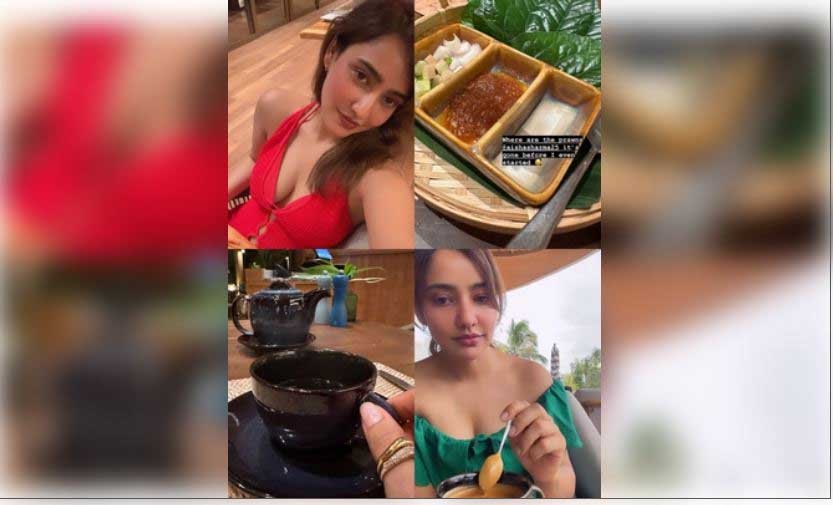 अभिनेत्री नेहा शर्मा अपनी बहन आयशा के साथ थाईलैंड के फुकेट में धूप का आनंद ले रही हैं। उन्होंने अपनी छुट्टियों के मस्ती की एक झलक साझा की है, जिसमें उन्होंने अपनी यात्रा से एक मजेदार और मुंह में पानी लाने वाला पल साझा किया है। उन्होंने खुलासा किया कि उनके खाने की प्लेट पर स्वादिष्ट प्रॉन (झींगे) खाने का मौका मिलने से पहले ही गायब हो गए थे।