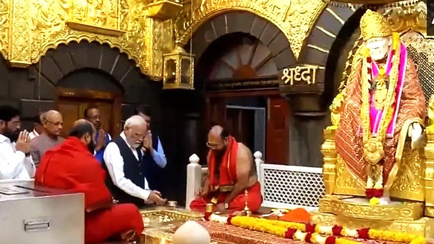 नई दिल्ली, 26अक्टूबर। प्रधानमंत्री नरेंद्र मोदी आज यानी 26 अक्टूबर को महाराष्ट्र के दौरे पर हैं। इस दौरान पीएम ने 5 साल बाद शिर्डी के साईं बाबा मंदिर में दर्शन किए। PMO के मुताबिक, पीएम मोदी ने साईं मंदिर में नए दर्शन कतार परिसर का भी उद्घाटन भी किया। पीएम ने इसकी आधारशिला साल 2018 में रखी थी। वह राज्य में आज 7500 करोड़ की कई विकास परियोजनाओं का उद्घाटन और शिलान्यास भी करने वाले हैं। इसके बाद आज ही वह गोवा के लिए रवाना होंगे।
