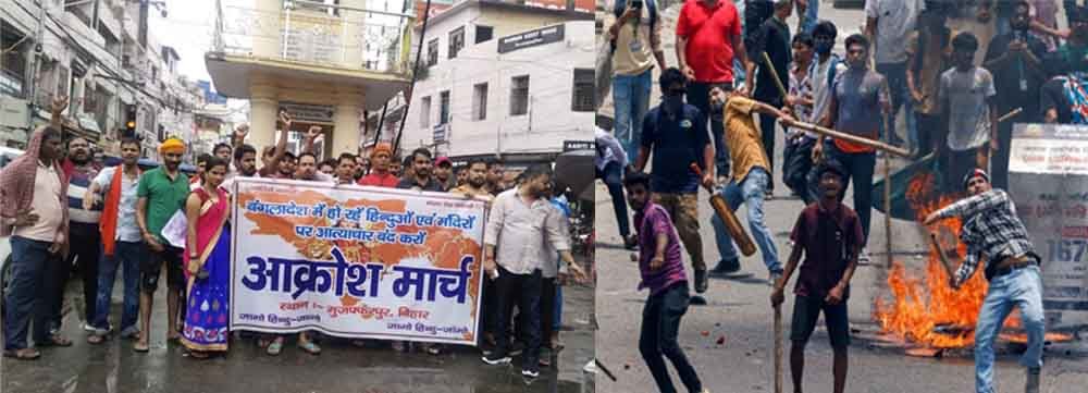मुजफ्फरपुर में हिंदूवादी संगठन ने बांग्लादेश में अल्पसंख्यक हिंदू समुदाय पर हो रहे अत्याचार और हिंदू मंदिरों को निशाना बनाए जाने के खिलाफ विरोध मार्च निकाला। यह पैदल मार्च शहर के खुदीराम बोस स्थल से सरैयागंज टावर तक निकाला गया। इस दौरान मार्च में शामिल लोगों ने हिंदुओं की रक्षा सुनिश्चित कराने की मांग की।